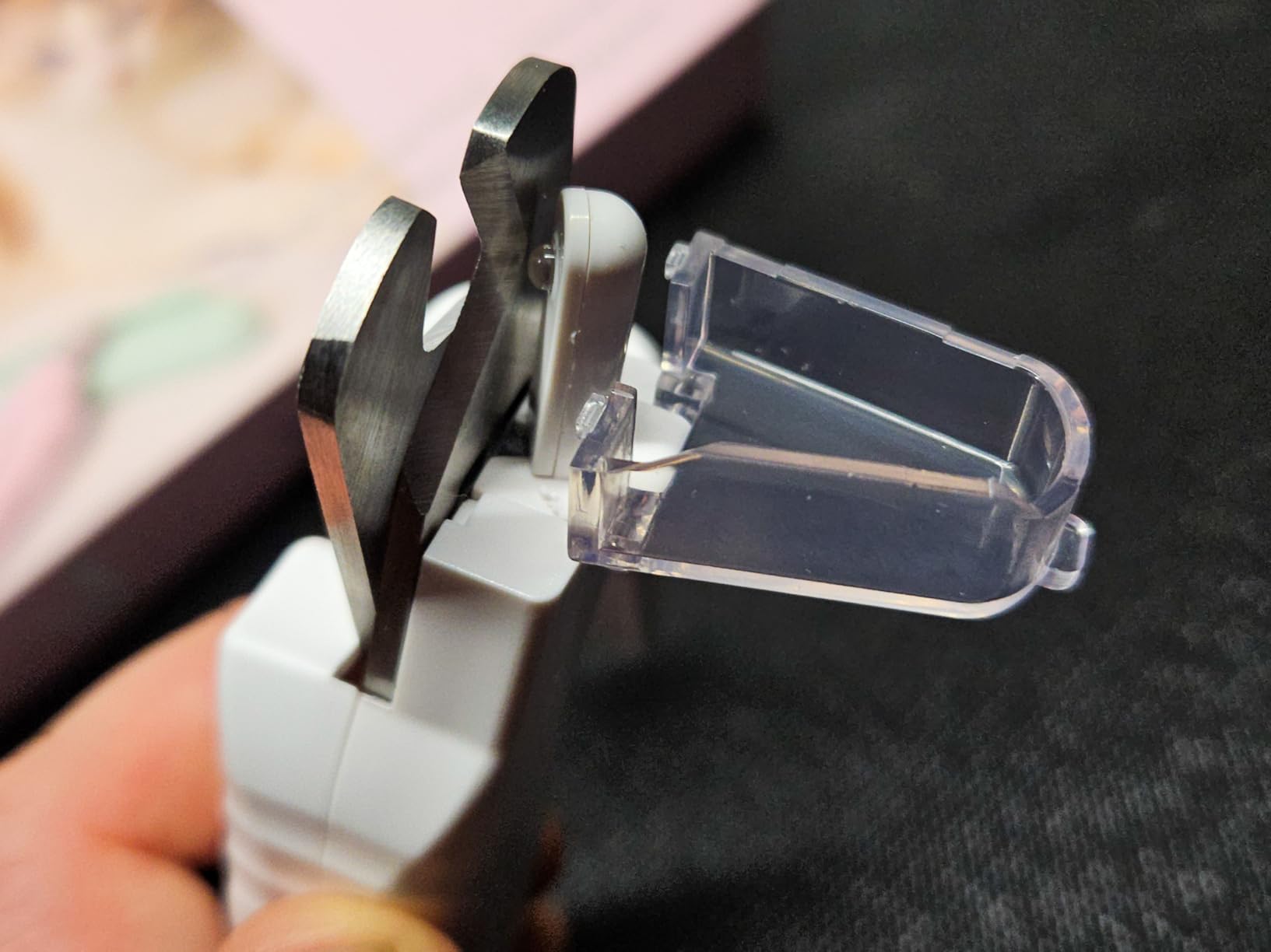 De buede stålknive klipper rent og præcist, sikkerhedsstoppet sørger for, at du kun klipper lidt ad gangen, og LED-lyset gør det nemt at se neglen uden at ramme den bløde del (pulpen).